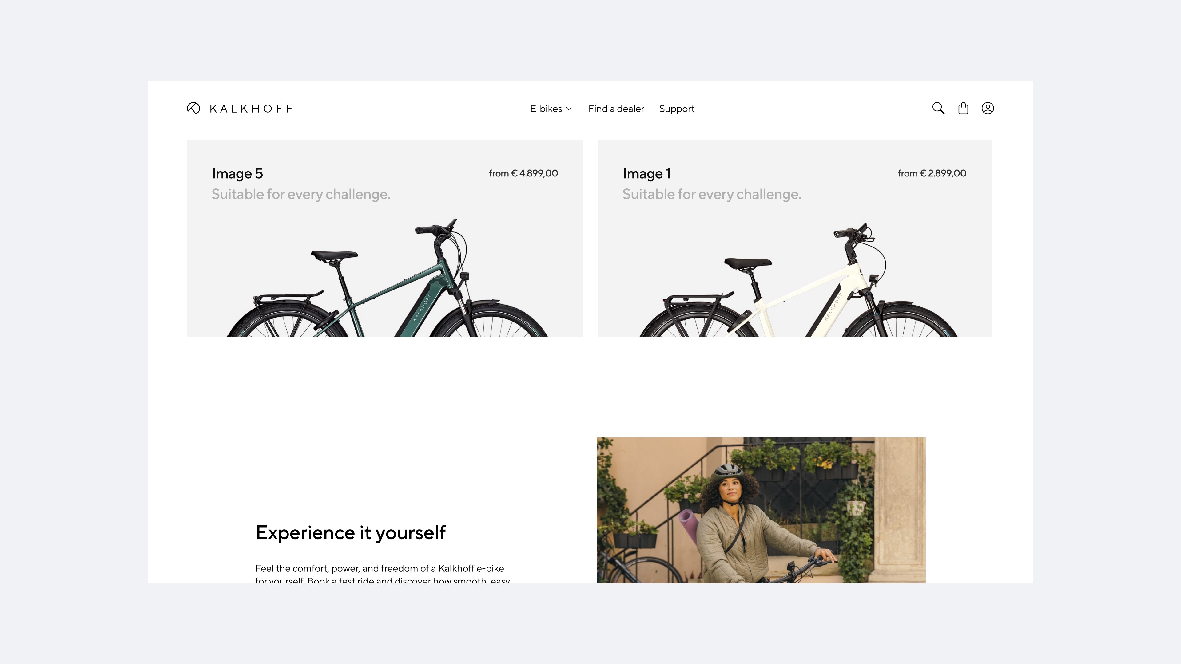A digital buying journey for Kalkhoff’s e-commerce platform.