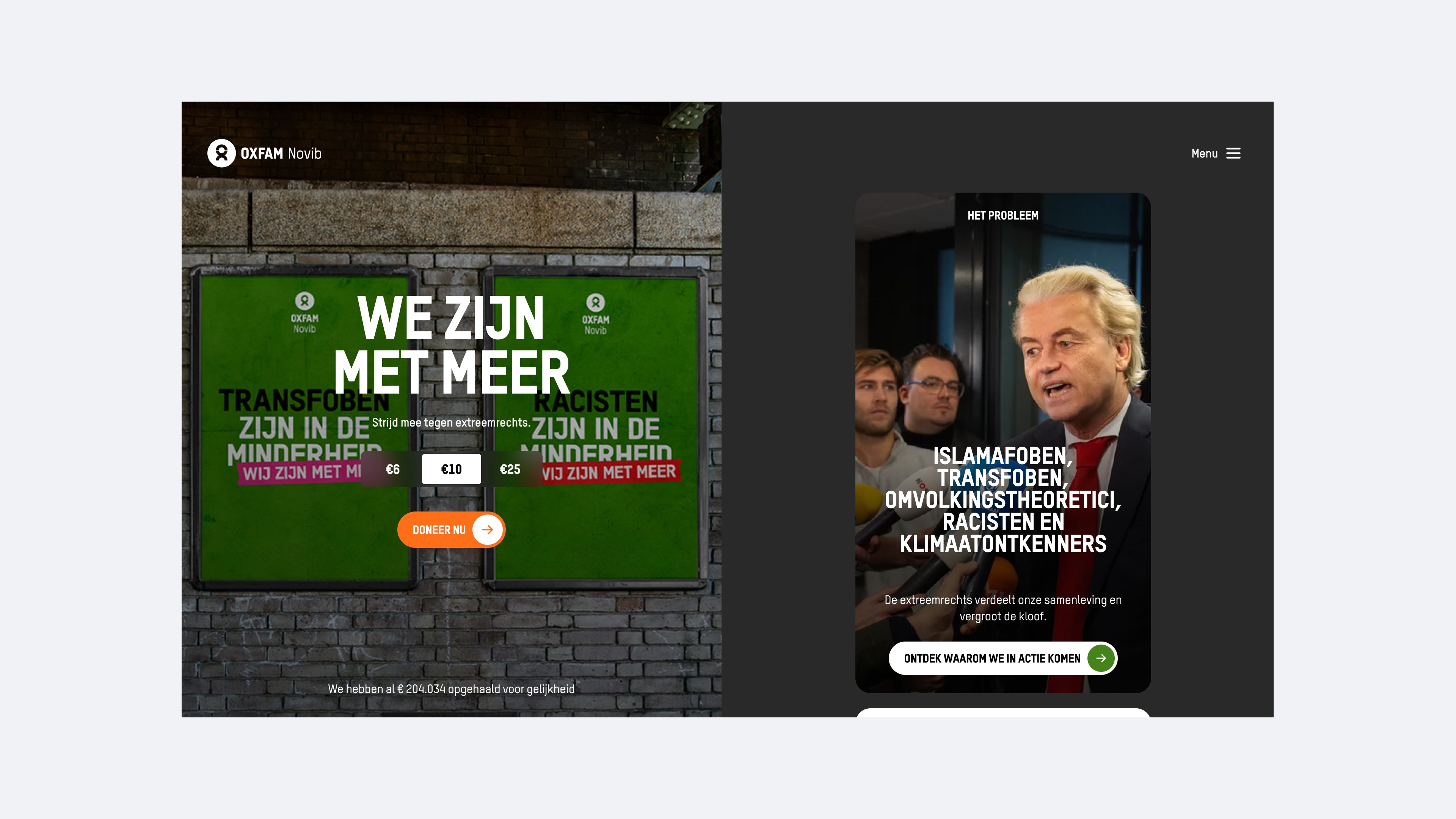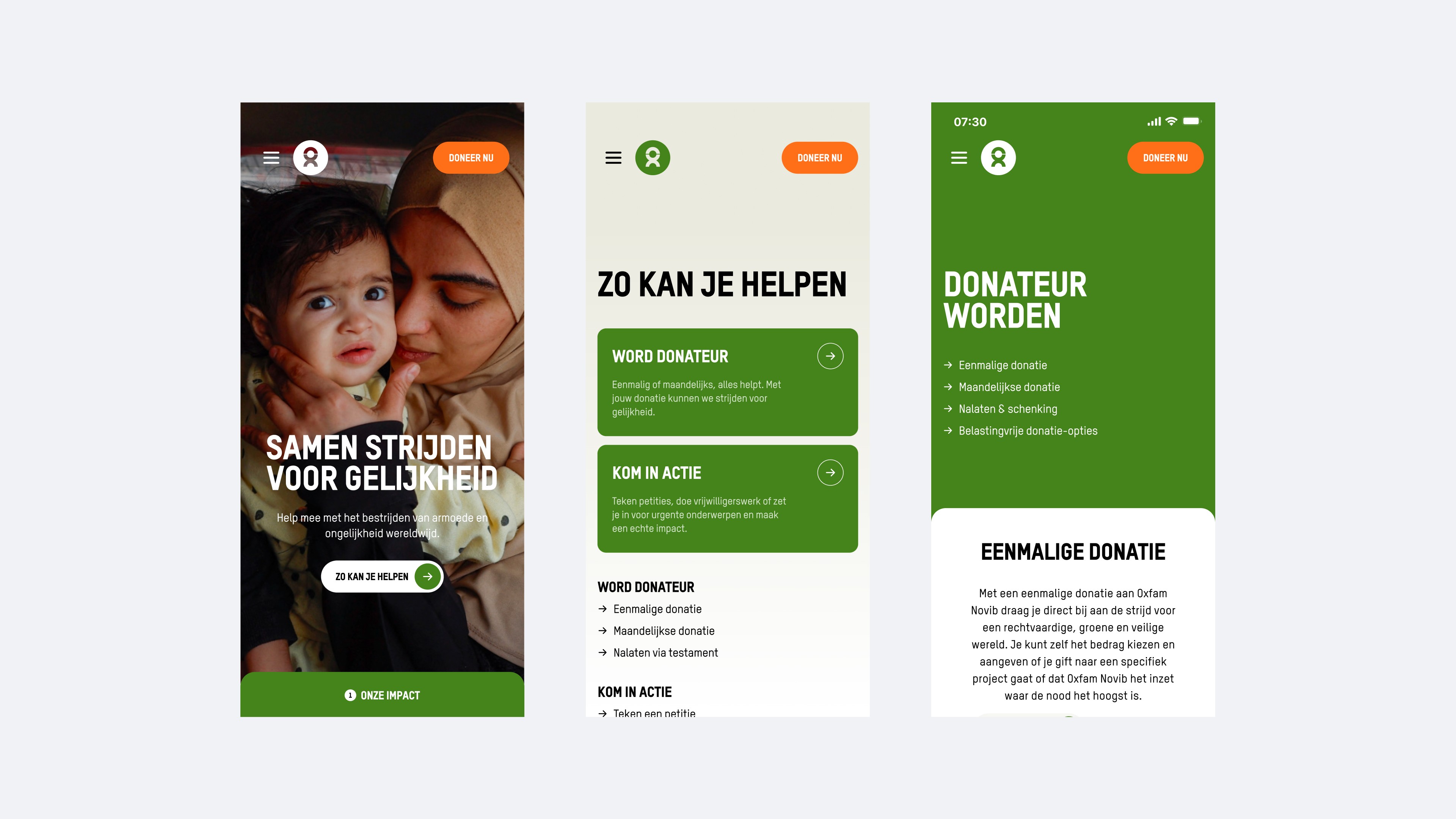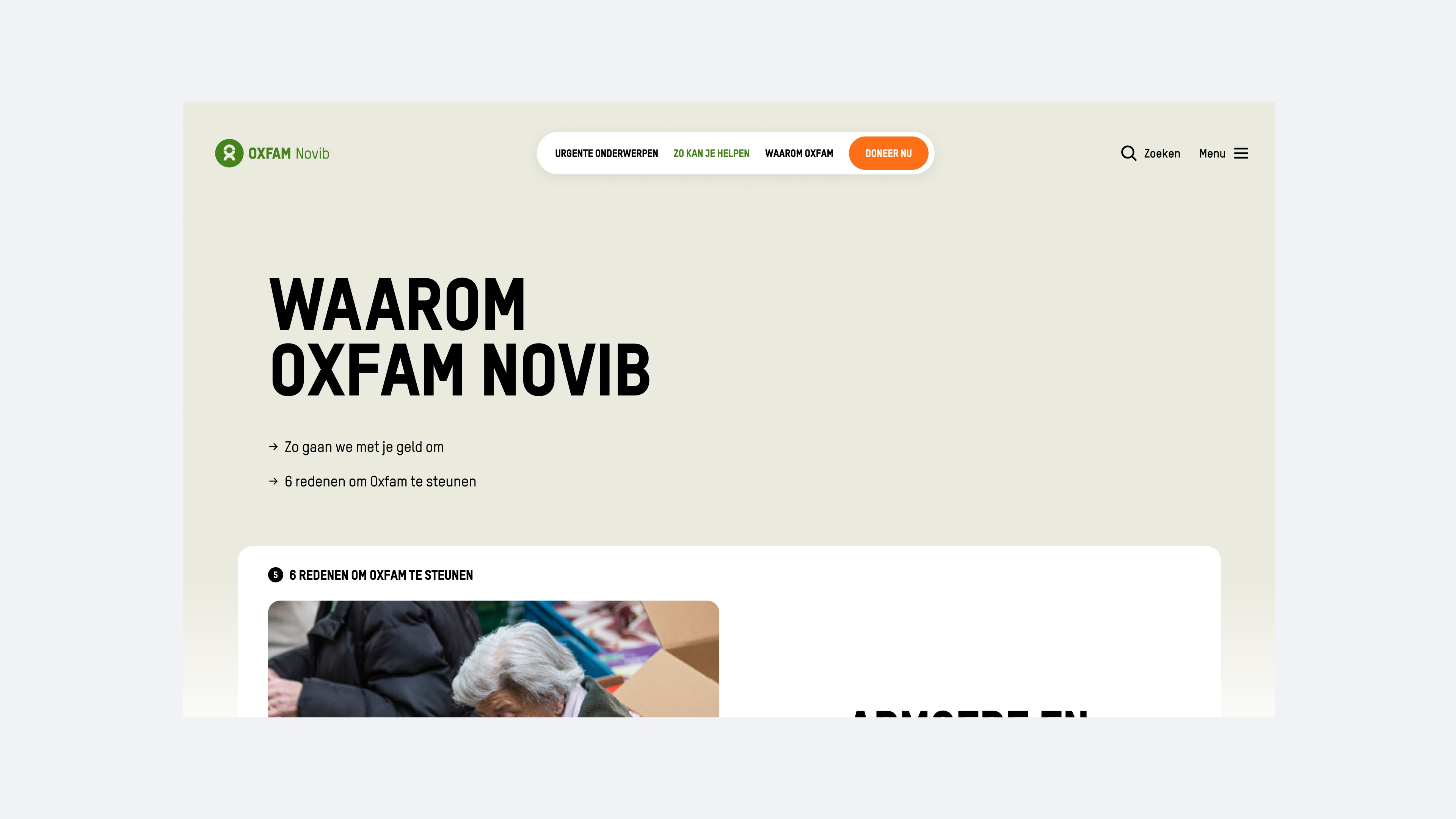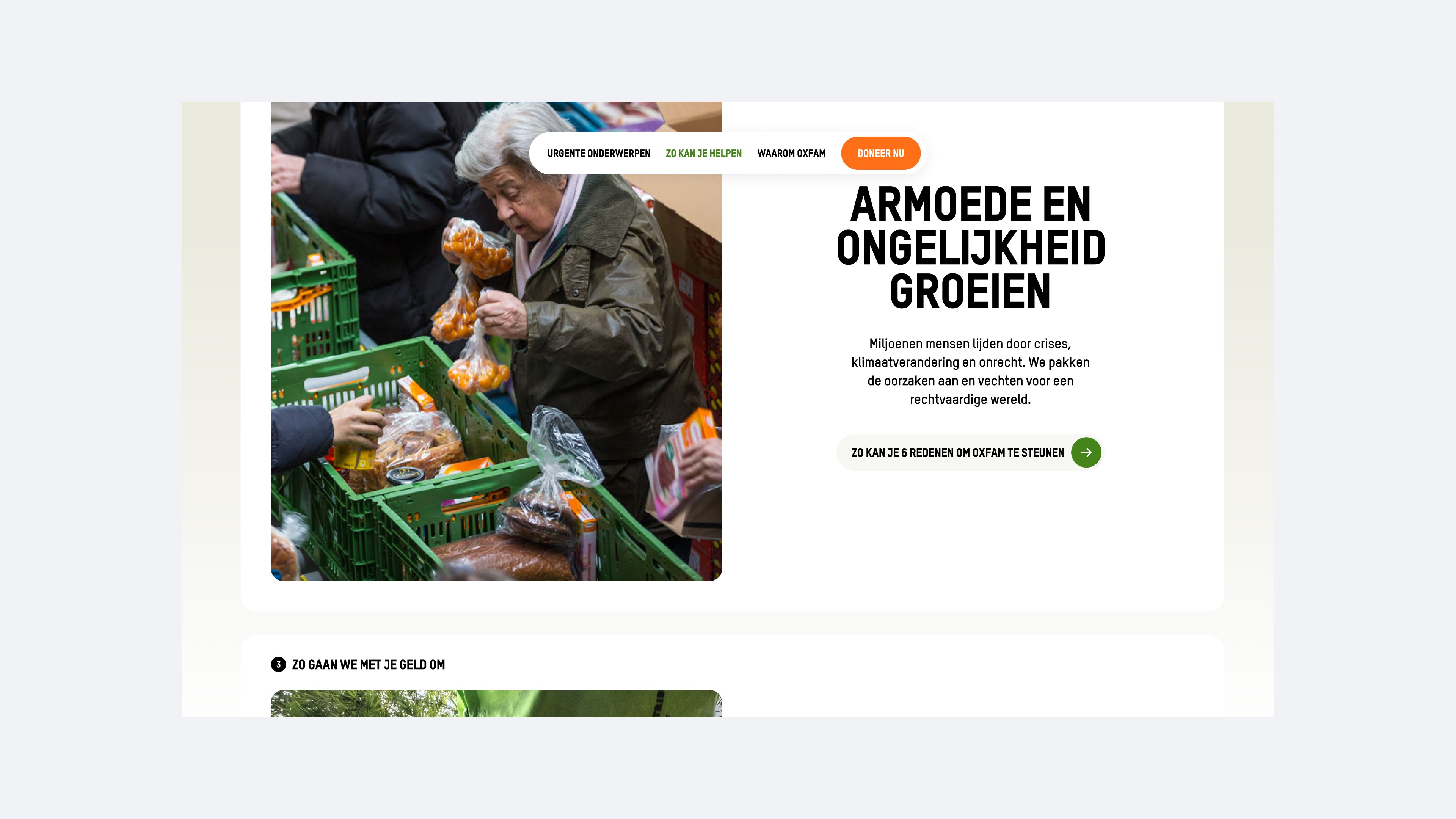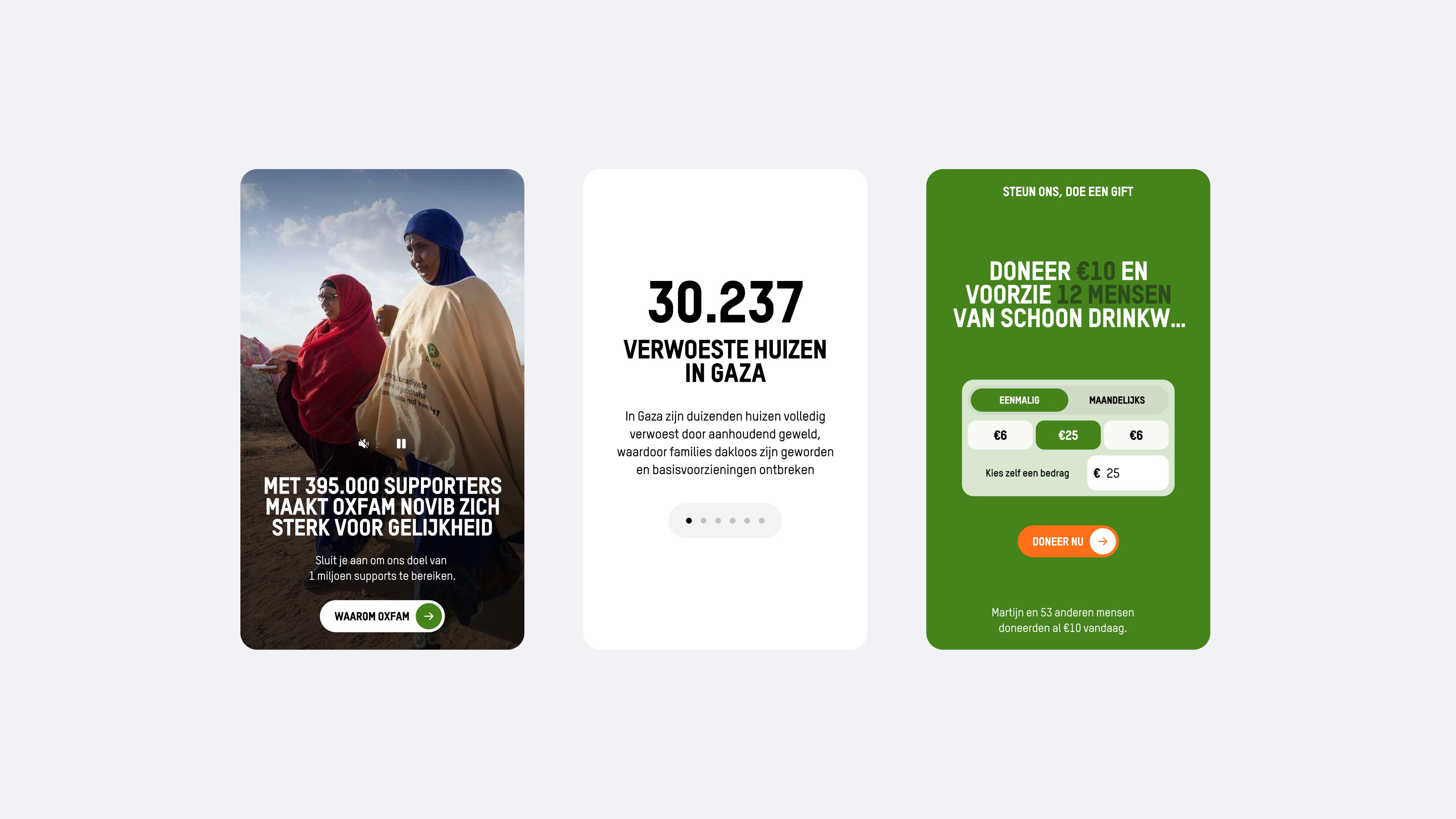A narrative-driven digital platform translating Oxfam Novib mission into themed story worlds and supporter journeys.